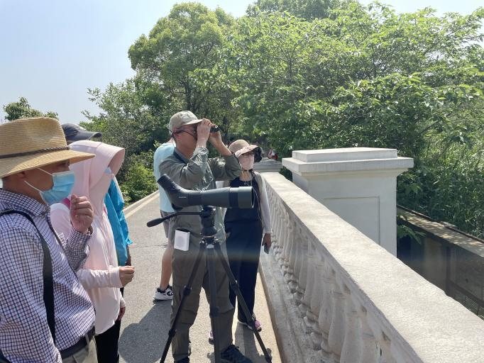 自然之友武汉湿地保护小组代瀚老师对该公园鸟类多样性情况进行了简单说明,并对鸟类调查技术与方法进行讲解。随后在杨桥湖边,代老师指导现场人员使用望远镜进行定点观鸟,观鸟体验活动参与度极高,大家纷纷表示感受到了生物多样性的独特魅力,收获乐趣。