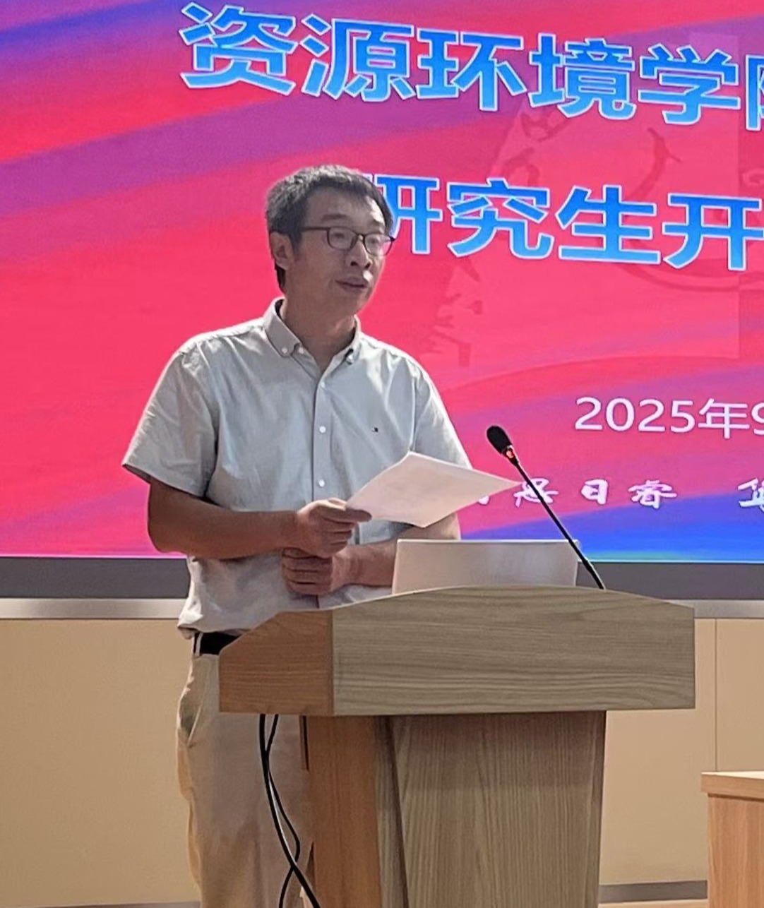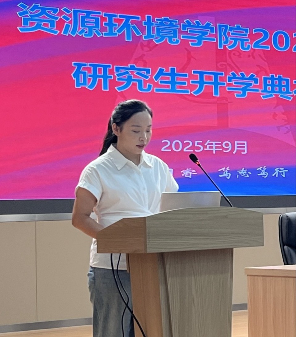 2025级自然地理学专业李静雯作为新生代表发言。她希望同学们恪守学术规范,践行“日思日睿,笃志笃行” 的校训精神,以专业守护自然家园。同时,她祝愿各位同学们不负时代、学有所成!