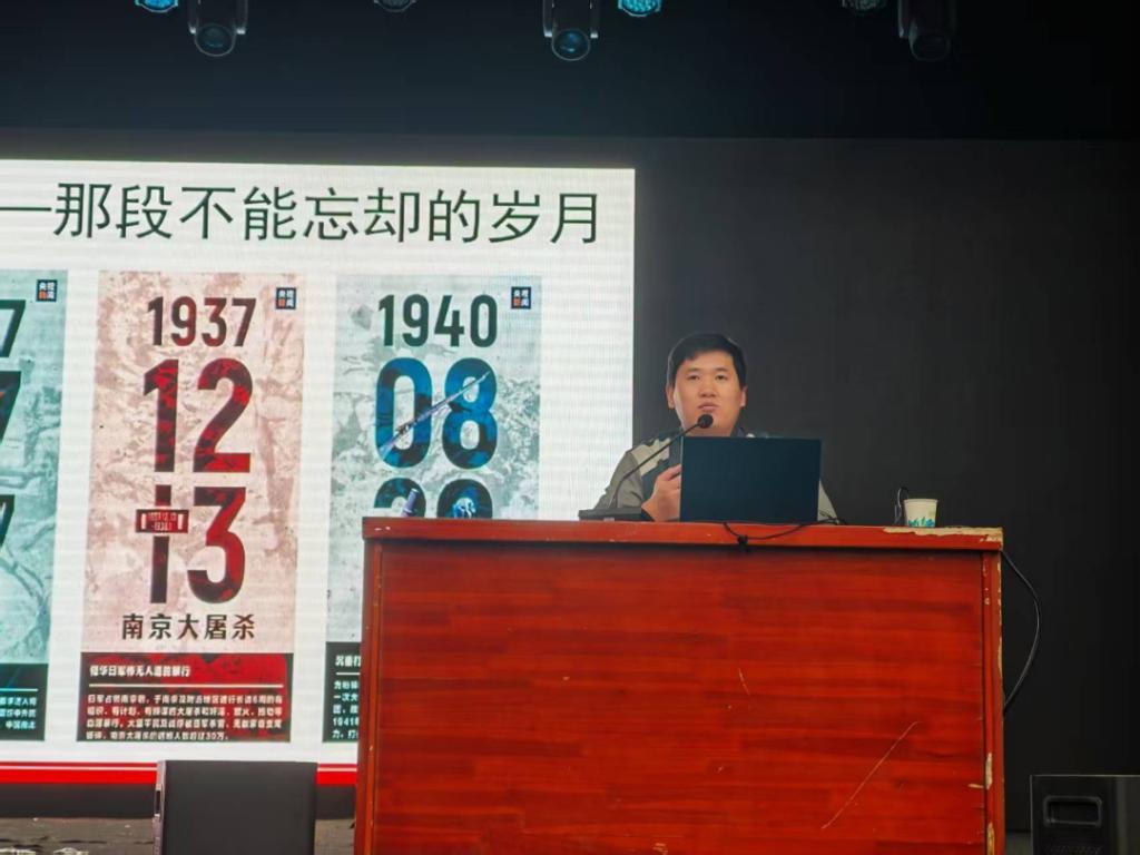 师范学院辅导员韩鹏振老师以“以史为鉴,青春同行:在传承抗战精神中砥砺前行”为题作报告,通过“回溯·历史的重量”、“凝炼·精神的火炬”、“传承·时代的回响”和“践行·青春的答卷”四个维度,激励青年学生以史为鉴、赓续精神、奋发有为,在实现民族复兴的征程中贡献青春力量。