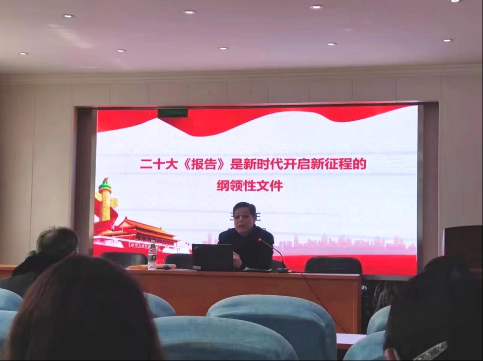 为持续深入学习宣传贯彻党的二十大精神,学院党委于2月15日下午,在学院一楼会议室举办了以学习宣传贯彻党的二十大精神为主题的专题报告会。学校宣讲团成员、原校学生工作部部长王体正教授作题为《二十大<报告>是新时代开启新征程的纲领性文件》的专题辅导报告,学院教工党员、学生党员代表参加学习。