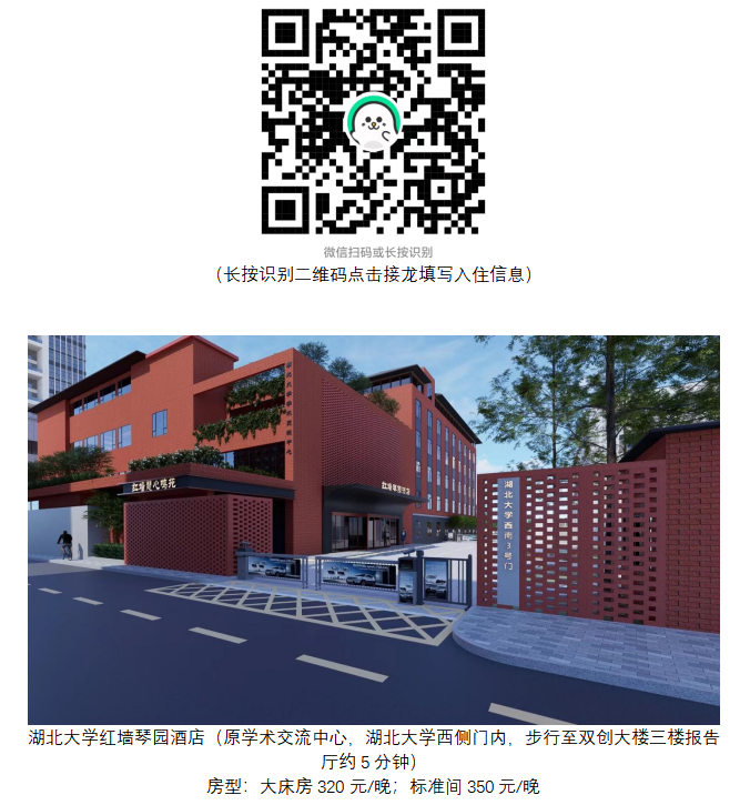 因近期会议较多,会务组提前在威廉希尔中国官网红墙琴园酒店预留了部分标准间,费用由参会代表自付。请需要住宿的代表于2025年12月27日前扫描下方二维码提交住宿信息: