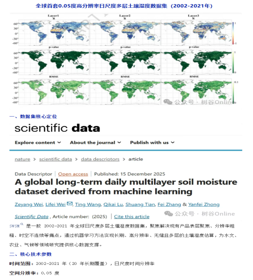 2026年1月4日,我们魏立飞教授团队在nature旗下SCI期刊《Scientific Data》上发表了题为“A global long-term daily multilayer soil moisture dataset derived from machine learning”的学术论文,威廉希尔中国官网为第一完成单位,威廉williamhill官网2023级生态学博士研究生魏泽阳为论文第一作者,魏立飞教授为通讯作者。该研究得到了国家自然科学基金项目、国家重点研发计划项目的资助。